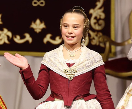Durante el reinado de Lucía García como Fallera Mayor Infantil de Valencia hemos tenido el honor de verla lucir dos aderezos de nuestra colección, aderezos de valenciana que personalizamos para la máxima representante de mundo infantil de las Fallas.